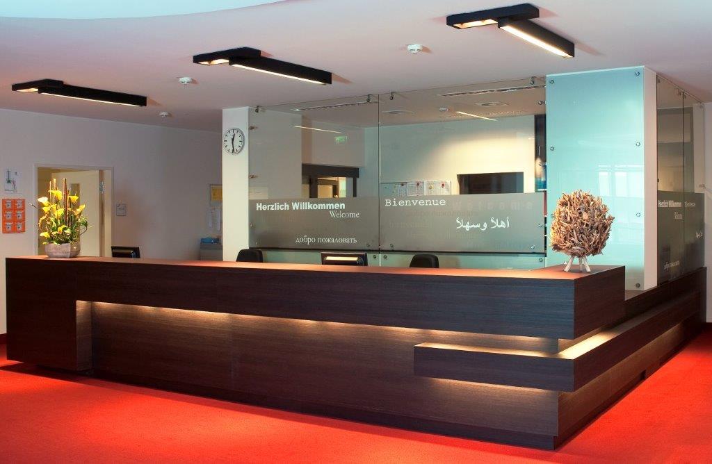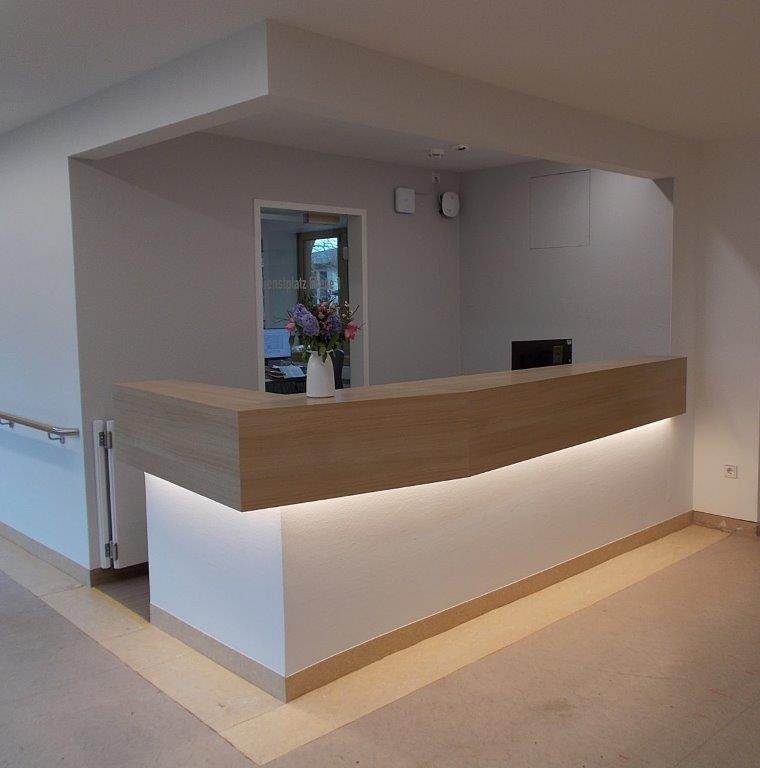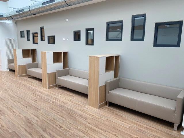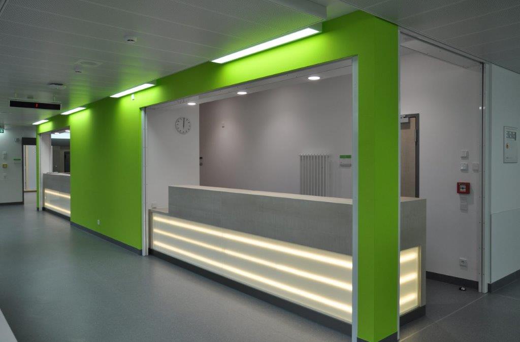 Reprezentativní recepční pulty, posezení a čekací zóny pro firmy, ordinace a veřejné prostory.